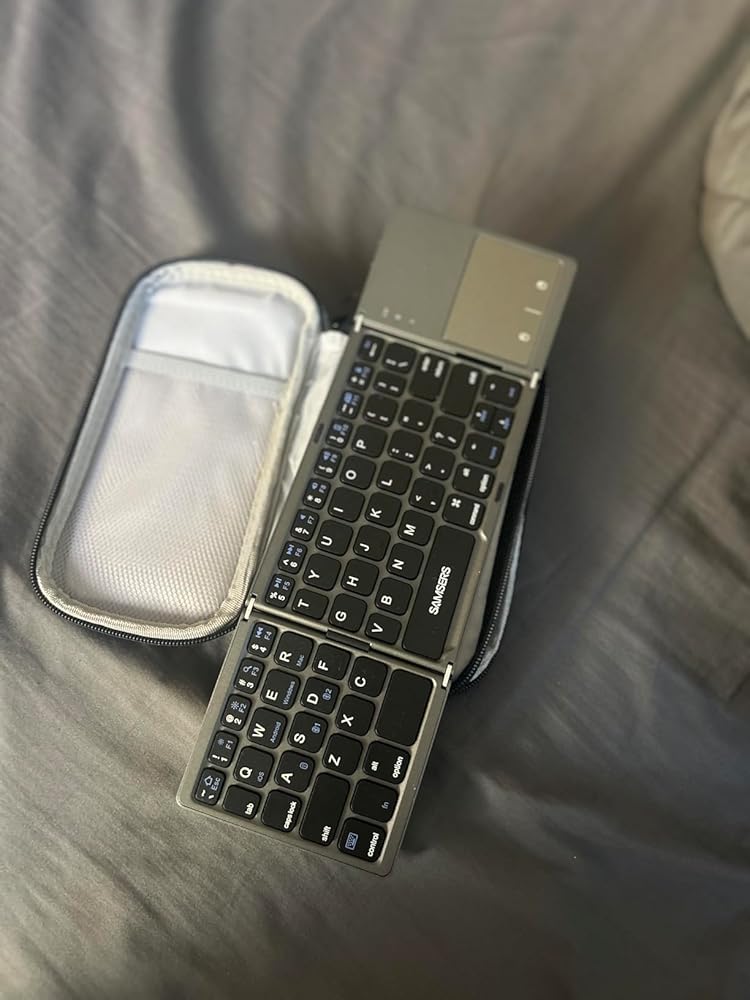 I recently purchased the Samsers Multi-Device Foldable Bluetooth Keyboard, and it has exceeded my expectations. The compact, foldable design makes it incredibly portable—perfect for travel or working from various locations. Despite its small size, the keyboard unfolds to provide a full-sized typing experience, which is both comfortable and efficient. The Bluetooth 5.1 connectivity is stable and allows seamless switching between up to three devices, which is a game-changer for multitasking. The built-in stand holder is a thoughtful addition, providing a convenient spot to place your device while typing. Battery life is impressive, lasting up to 90 hours on a single charge, making it reliable for extended use. Whether you’re a frequent traveler, student, or professional, this keyboard offers a practical and stylish solution for on-the-go typing needs.